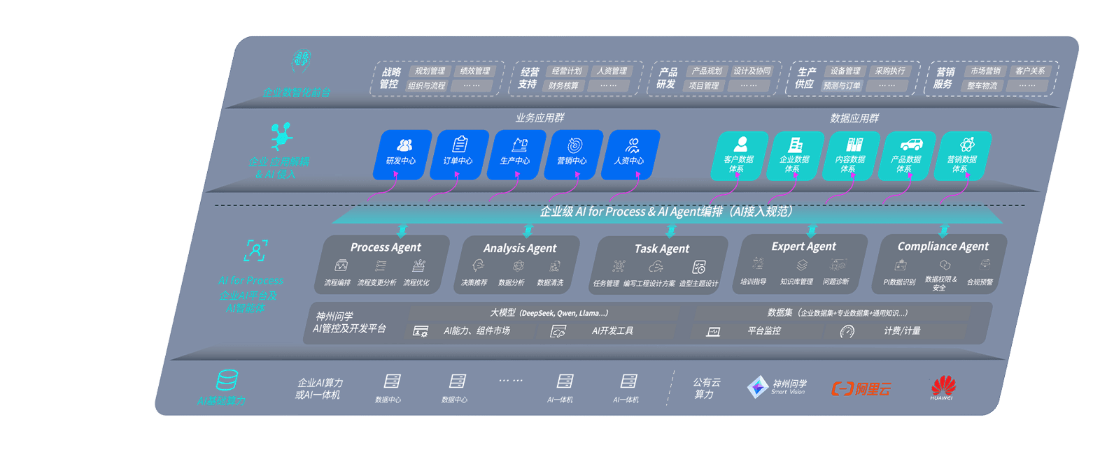 端到端的一站式AI工作空间深度融合了从企业战略规划到日常经营的全流程业务板块,,定向解决车企内部领域多、、、、部门多、、、链条长、、、、场景碎片化等难题,,支持车企快速构建以AI为核心的生产力写作体系,,,,实现任务执行与AI能力的无缝集成与交互